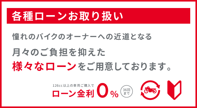 ※125cc以下のバイクをご購入の場合は、5,500円の購入資金サポートとなります -