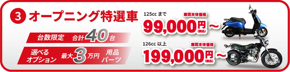 126cc以上 ⇒ (税込) ¥199,000から20台