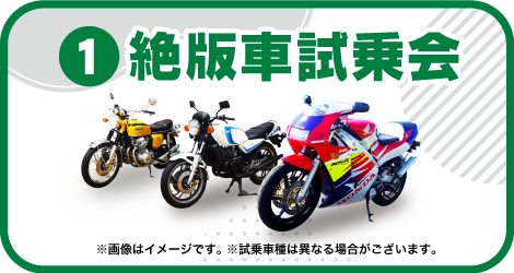 ①RZ350②CB750③NS250R※車種は変更になる場合がございます。