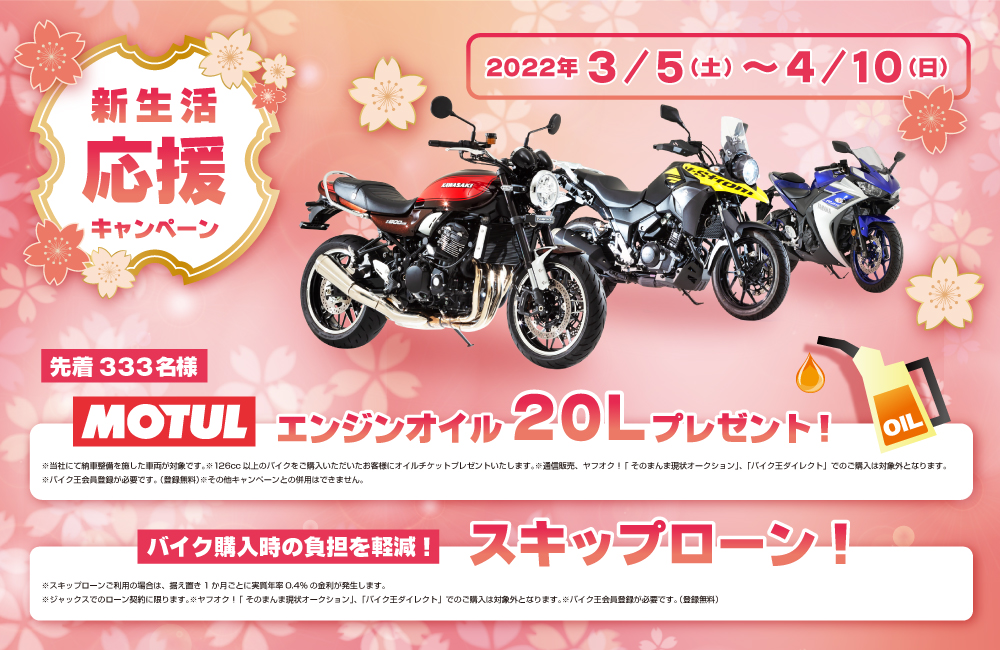 期間中にバイク王店舗にて126cc以上のバイクをご購入いただいたお客様から先着333名様に、