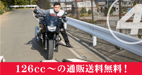 126cc以上の通信販売でのご⾃宅までの送料が無料になりました。※1 実車確認してからご購入をご希望の場合、お近くの店舗へのお取り寄せも、同エリア内の移動なら送料が無料になりました。※2